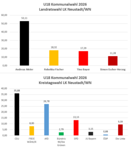 Letzte Woche wurde die U18-Wahl an teilnehmenden Schulen des Landkreises durchgeführt. Das Ergebnis haben wir euch beigelegt (Endergebnis_2026_Grafik.PNG).